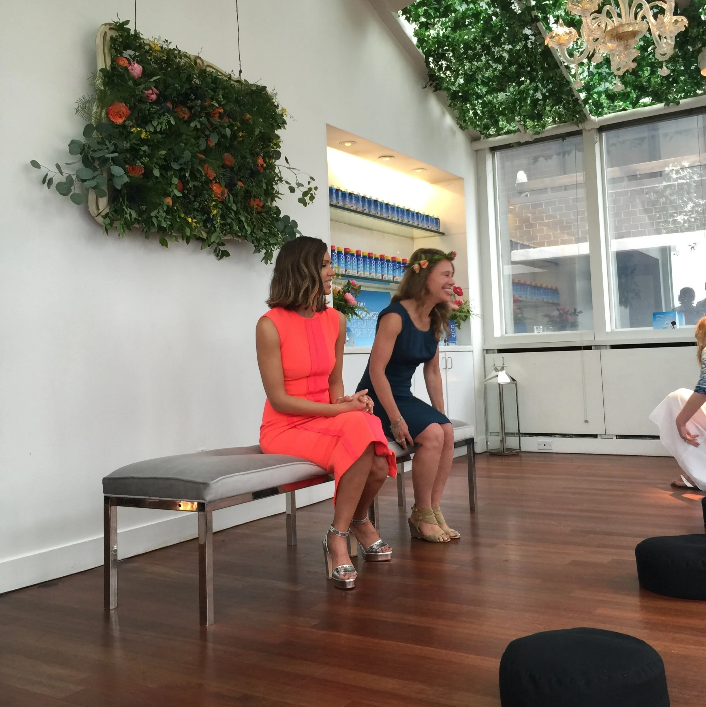 Dina guides a meditation with Jessica Alba for a press event with Zico coconut water.