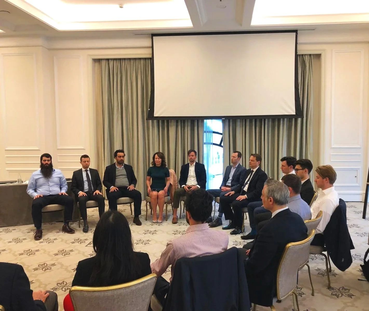 Dina speaks about the power of meditation and guides a meditation for a delegation of European executives.